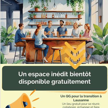 That space will promote social cohesion, cooperation and the visibility of local sustainable initiatives. Our ambition: to make the QG a real meeting place for citizens and a collective force for sustainability in Lausanne.