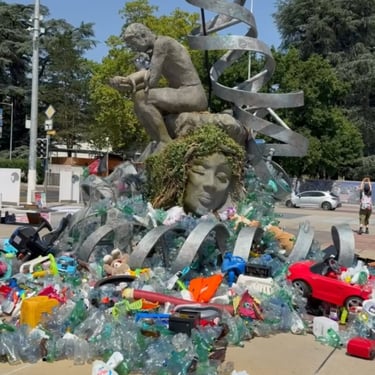 An evolving work of art placed on Place des Nations during the next anti-plastic summit in Geneva.